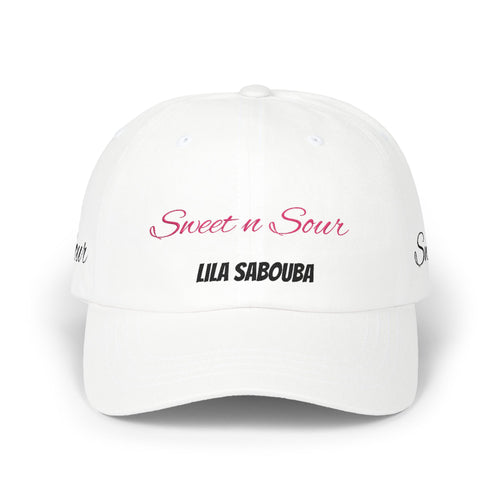 Dad Cap "Sweet n Sour" Lila Sabouba Embroidered White Baseball Hat
